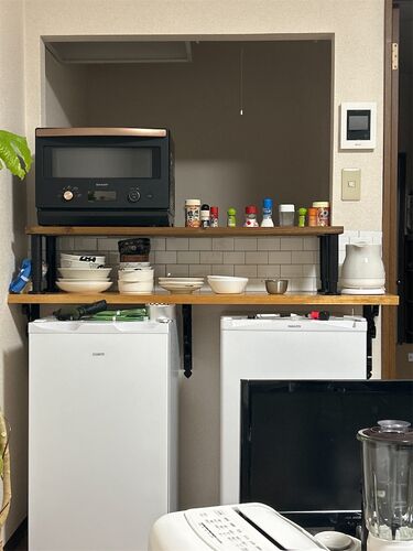 最近のインテリアのトレンドの水回りのタイル貼り憧れがあったのでやってみたけどシールでもそれっぽく仕上がったのでとても嬉しい。木板も本当は据付してある部屋の物と合わせたかったけどこれはこれで良いなと思える感じに仕上がったのでDIYしがいがあった…